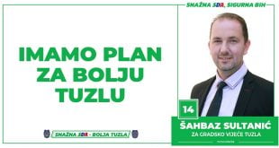 Opširnije »Šahbaz Sultanić, kandidat SDA Tuzla za Gradsko vijeće: Imamo Plan za bolju Tuzlu!
