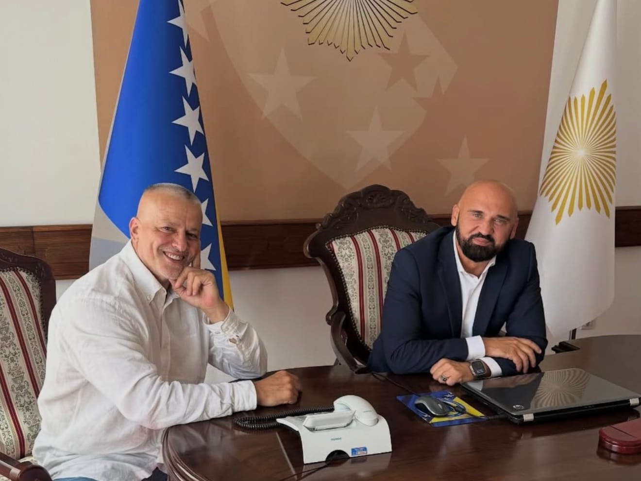 Fotografija dvojice sagovornika nastala je u kabinetu ministra, a Isak i Orić su, prema dostupnim informacijama, razgovarali o aktuelnim temama vezanim za sigurnost i društveno-političku situaciju u zemlji.