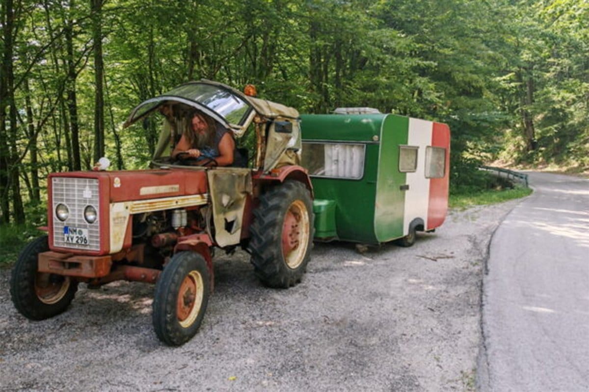 Neobična scena izmamila je osmijehe mještanima Kozarca kod Prijedora – stari traktor s njemačkim tablicama, koji vuče kamp-prikolicu u bojama italijanske zastave, polako je klizio glavnom ulicom. Za volanom – nasmijani Hansi Sielberhorn (56), poljoprivrednik iz Nirnberga, na životnoj misiji da svijet upoznaje sporo, ali srcem.
