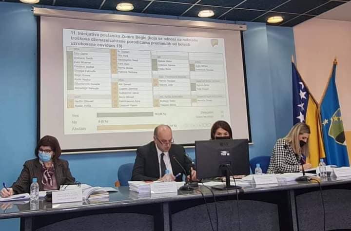 Zastupnica SDA u Skupštini TK Zumra Begić jučer je na sjednici Skupštini TK podnijela inicijativu za naknadu troškova dženaze/sahrane preminulih od posljedica Covid-19, a koji su uvećani za 600 KM, u odnosu na dosadašnju cijenu ovih usluga, a koju porodice preminulih snose u cijelosti.